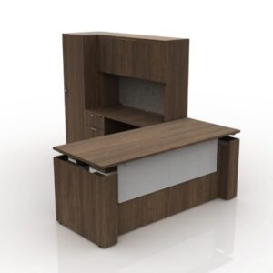 Height Adjustable L Shape Desk with Credenza and Desk Mounted Hutch (Multiple Sizes and Storage Available – Add Options for Pricing)