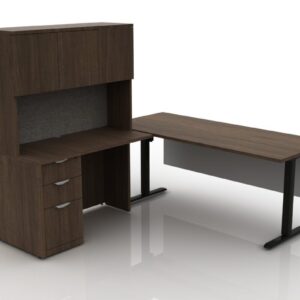 This fully laminated enclosed executive-height adjustable desk comes with a storage credenza and a hutch featuring glass doors.
